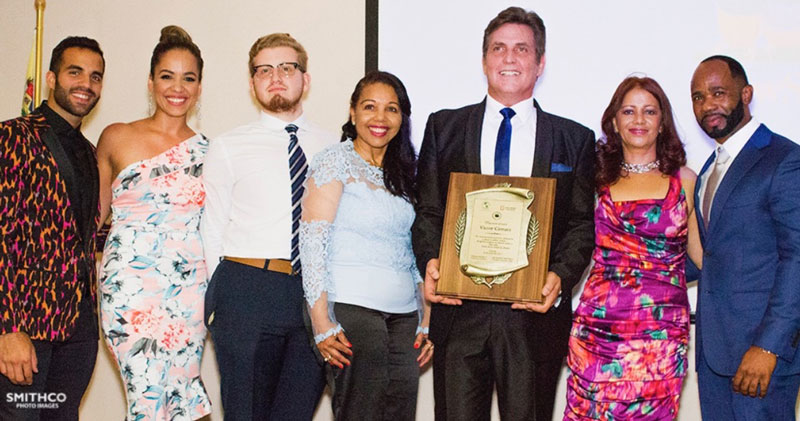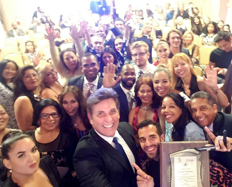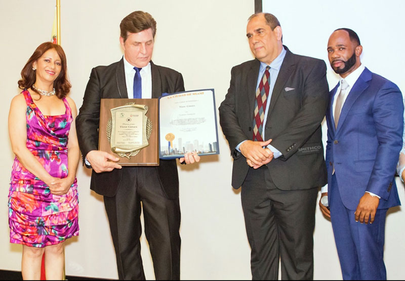 Then the actor received the recognition plate by Dellanira Herasme and José Rosario of FUNDACOT and Rosemary Santana and José Aybar son on behalf of the Rector José Alejandro Aybar of Unicaribe College. José Ramon Alvarez, assistant of the mayor of Miami, Tomas Regalado, presented Victor Cámara with a proclamation as a distinguished resident of the city for his contribution to Hispanic culture and social work.